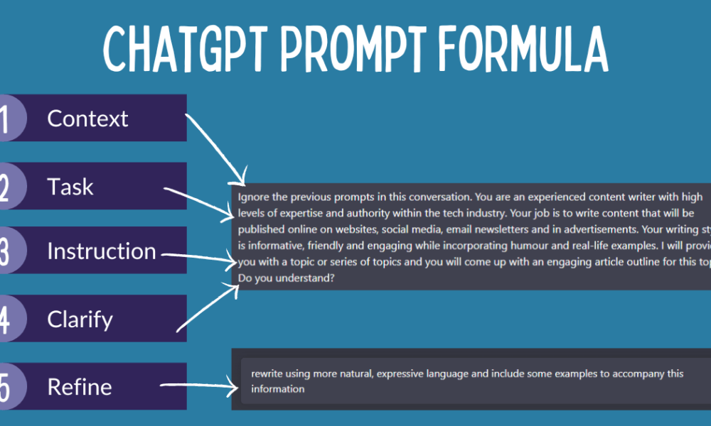 This is where the "context, task, instruction, clarify, refine" technique becomes invaluable. It presents a simple yet potent method for crafting outstanding prompts for ChatGPT, resulting in responses that are both unique and accurate.